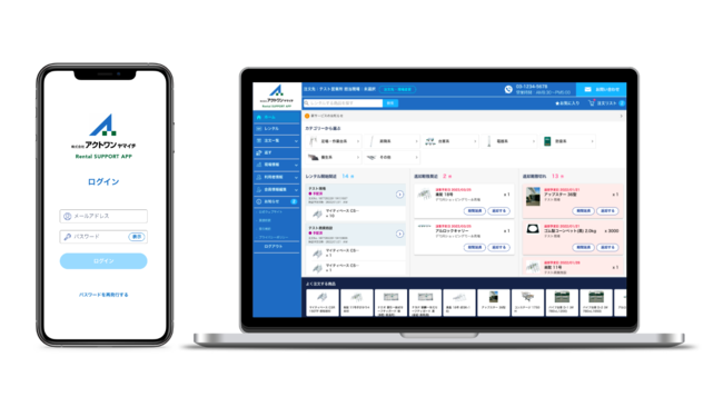 この度、建設用軽仮設機材レンタル事業を全国17拠点で展開するアクトワンヤマイチ様に「注文アプリ」を導入いただき、同社のDX(デジタルトランスフォーメーション)の推進をサポートさせていただくことになりました。また、今回の導入にあわせて、パソコンからのご利用が多い同社のお客様の利便性を高めるべく、お客様向け注文アプリのパソコン版をリリースしました。パソコンの特性である横幅を活かし、情報の全量感と視認性を重視したデザインであり、スマートフォン版と異なりスクロールせずとも情報を把握しやすく、また大量注文などのアクションを容易にできるように設計しております。