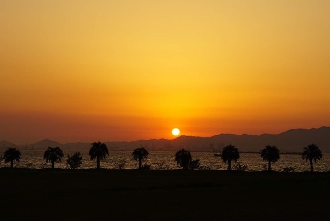 目の前には大阪湾が広がり、六甲山から淡路島、さらには四国の山容まで眺めることができます。空がオレンジ色に染まる夕景は「日本夕陽百景」に選ばれた名所でもあります。