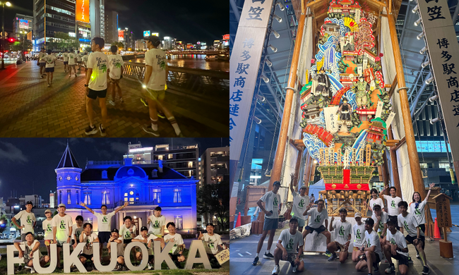 7月13日のPOP-UP初日には限定のナイトランイベント「Illumination Night Runtrip on FUKUOKA /. AND READY supported by NATHAN」を実施。当日は20名近くの参加者が集まり、7月1日から開催中の760余年の伝統を誇る「博多祇園山笠」で盛り上がる福岡市博多区内でグループランを行い、ランニングと交流を楽しみました。