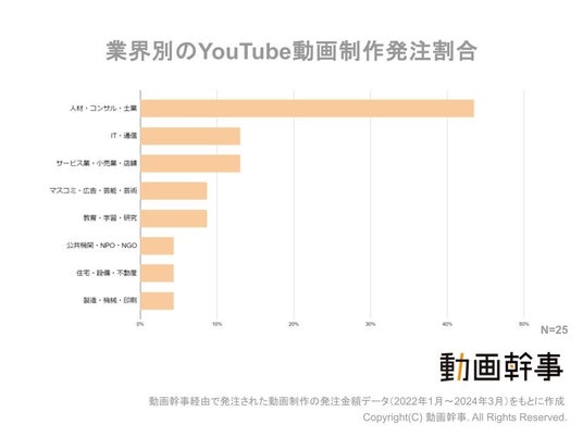 以下は、YouTube動画制作の発注者を業界別に並べたグラフです。
