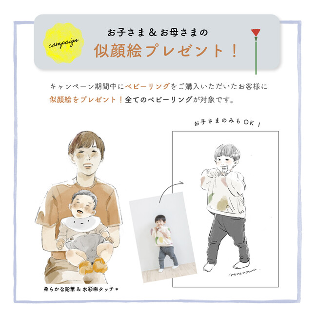 ベビーリングの専門店nenenowa(ネネノワ)は2023年3月16日~4月26日まで、ベビーリングをご購入のお客様に似顔絵をプレゼントする「母の日キャンペーン」を開催いたします。