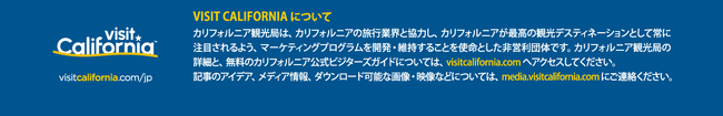「カリフォルニアの遊び心あふれるライフスタイルとバラエティー豊かな体験とのコラボレーションは、他のデスティネーションにはない魅力を生み出しています。カリフォルニアはまさに“最高のプレイグラウンド”なのです」とカリフォルニア観光局長兼CEOのキャロリン・ベテータは語りました。「遊びの力は科学的に証明されていますが、どの世代においても遊びの時間に満足していない人が大多数を占めています。今こそ、その現実を変える時です」。