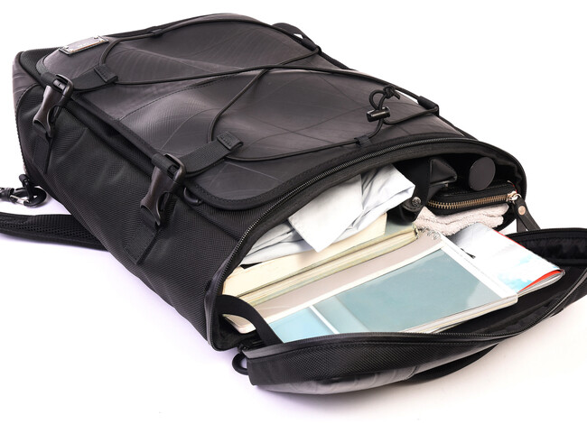 新発売した「CUBE BACKPACK」は、大容量のメインコンパートメントを備えたボックス型のバックパックです。上部の間口は大きく開きパソコンや書類などの持ち物をスムーズに出し入れすることができます。前面のフラップを開けるとファスナーが付いており、メインコンパ―トメントに直接アクセスすることも可能です。水筒やスマホが入るポケットを搭載し、サッと取り出したいものもアクセスがしやすい作りに仕上げました。
