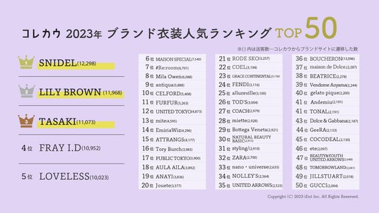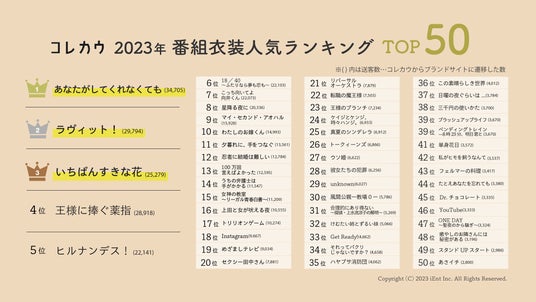 OMO(Online Marge with Offline)ソリューションを手掛けるアイエント株式会社(本社:東京都渋谷区神宮前、代表取締役 大森智人)は、ファッションに特化したEC支援やPRプラットフォームを開発・運営しており、自社サービス「芸能人が着用した衣装が見つかるコミュニティサイト(コレカウ)」を運営する際に取得するファッションデータを活用し、2023年にテレビ放送された番組や出演したタレントのファッション、ブランドの人気ランキングを発表しました。