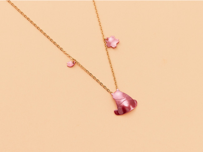 上野案内所限定商品として、パンダの後ろ姿と、ひらりと舞う桜をモチーフにしたネックレスを発売。日本の伝統技法による美しい緋色の輝きをお楽しみください。