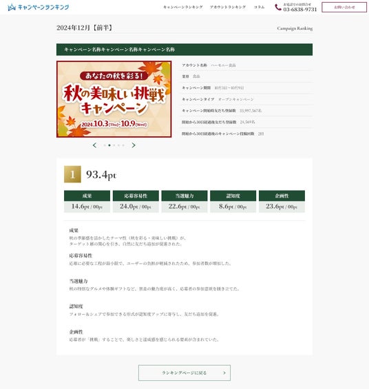 ランキングからは、点数化された最終スコアや上位キャンペーンの詳細を確認できます。