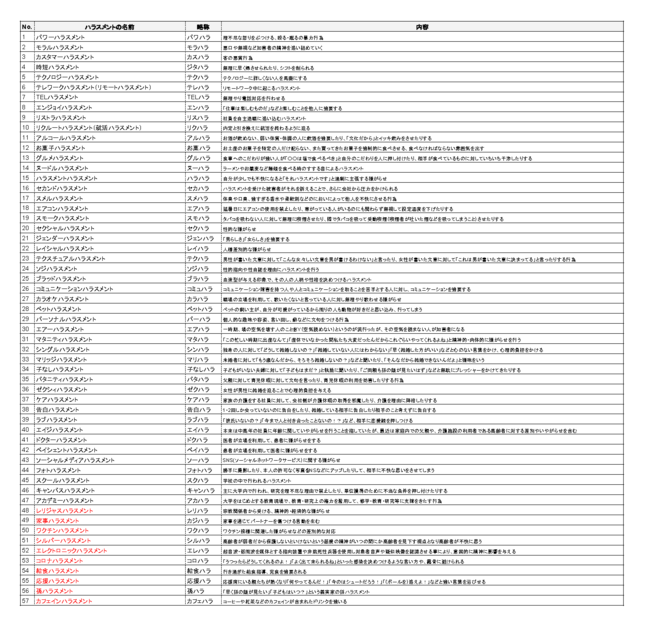 ※ハラスメントカオスマップは当社が独自のリサーチにより独自に作成したものであり、網羅性や正確性を完全に担保するものではありません。