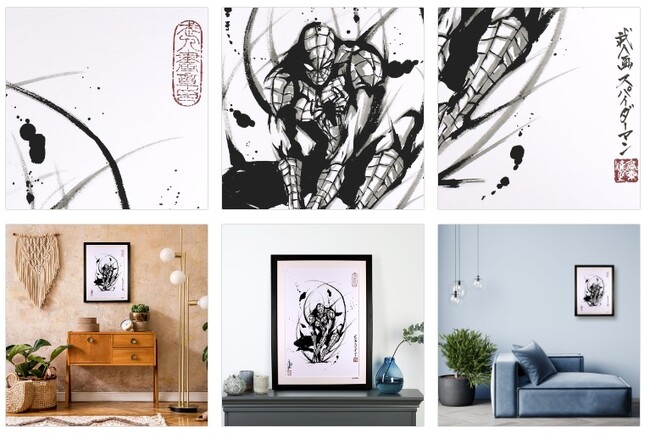 版三 浮世絵オンラインショップではこうじょう雅之のマーベル 武人画「スパイダーマン」の原画3種類を蔵出し。躍動感溢れるスパイダーマンの姿は水墨画の手法によって唯一無二の輝きとインパクトを放ち、ファンのみならず見る者すべてを魅了します。すべて1点限りとなります。