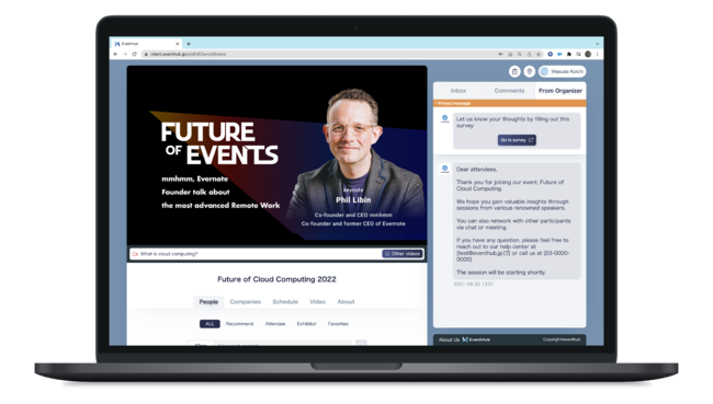 イベントの最も重要な目的である「顧客との接点」や「ビジネス創出につながる出会い」を最大化するコミュニケーション機能も充実させており、エンゲージメントの高いイベントやセミナーを実現し、企業のマーケティング活動を支援しています。