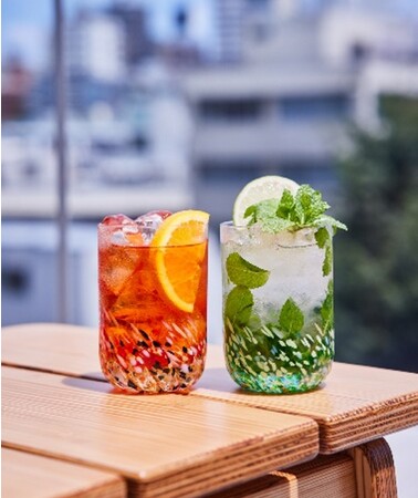さらに本イベント開催期間には、見た目にも味わいにも爽快感のある『クラシック モヒート』と、食前酒としておすすめの『ネグローニ ズバリアート』を、『JIMOTO Made+ 津軽びいどろ』の涼しげなグラスに注いででご提供いたします。びいどろグラスは、目黒川沿いに並ぶ夏の桜の緑葉や館内のカッパーキャスクをイメージして、職人が一つひとつ機械を使わずに硝子を吹いて仕上げました。一杯のカクテルを楽しむ体験の中にある、あたたかみのある手触りと風合いあるガラスの透明感を通して、日本が誇る匠の技術を五感で感じてみてはいかがでしょうか。