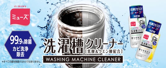 こうした課題に着目しミューズは、塩素・漂白成分ゼロでありながら、99.9%の除菌※カビ洗浄除去効果を実現した洗濯槽クリーナーを開発しました。※すべての菌を除菌するわけではありません。