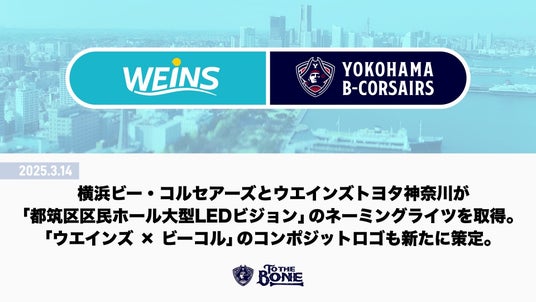 株式会社横浜ビー・コルセアーズ(本社:横浜市都筑区、代表取締役:白井英介)とウエインズトヨタ神奈川株式会社(本社:横浜市中区、代表取締役社長:宮原 漢二)は、優先交渉権を獲得していた「都筑区区民ホール大型LEDビジョン」のネーミングライツを2025年3月13日に取得しましたのでお知らせいたします。契約期間は2025年3月13日から3年間、愛称は「B-COR i ビジョン(ビーコルアイビジョン)」となります。