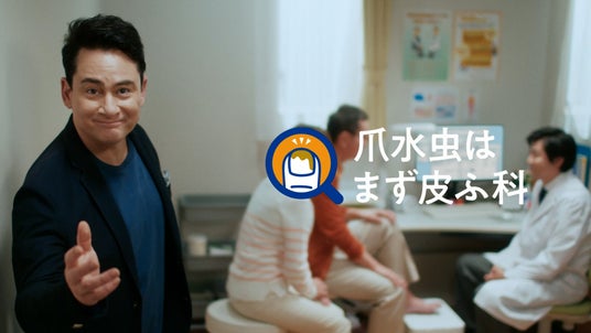 本TVCMは、『えっ爪水虫』篇および『孫の指摘』篇の2種類があります。『えっ爪水虫』篇では、野口さんが自分の足の爪の異変に気付き、調べることをきっかけに、爪水虫の症状や感染リスクについて知るストーリーです。また、『孫の指摘』篇では、孫が祖父の爪の異変を指摘し、驚いた祖父の前に爪水虫のアドバイザー役の野口さんが登場し、爪水虫の症状や大切な家族への感染リスクを伝えるストーリーです。どちらも、「爪水虫は まず皮ふ科へ」というメッセージを通じて、適切な診断と治療の必要性を啓発します。