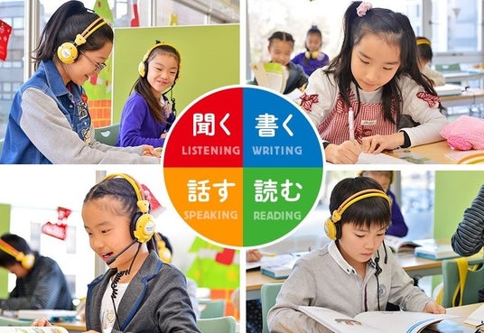 レッスンでは、自立学習向けに独自開発した、入門~上級の4レベル全81冊のネイティブ音声付きテキストを使い、小学生のうちに日常生活に必要な 8,000以上の語彙を習得します。また、受講生一人ひとりの習熟度に合った選択が可能で、幼稚園や 小学校低学年からでも始められるよう、豊富なカラーイラストに加え、チャンツ(歌)やクイズ、ぬり絵、パズルなどを盛り込み、子どもたちが楽しみながら学べる工夫を凝らしています。さらに、習熟度評価には、TOEIC(R)、英検(R)へとスムーズにつながる世界標準コミュニケーション英語能力テスト JET(Junior English Test:ジェット)を採用し、受講生ご本人と保護者さまに“目に見える学習成果”を定期的に報告しています。
