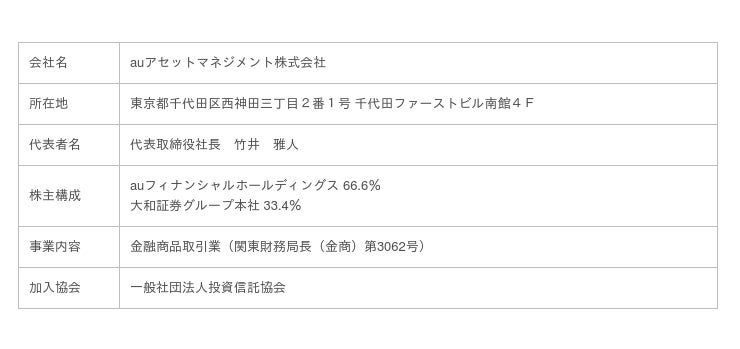 ファンド名称の auAM は、auアセットマネジメントの略称です。