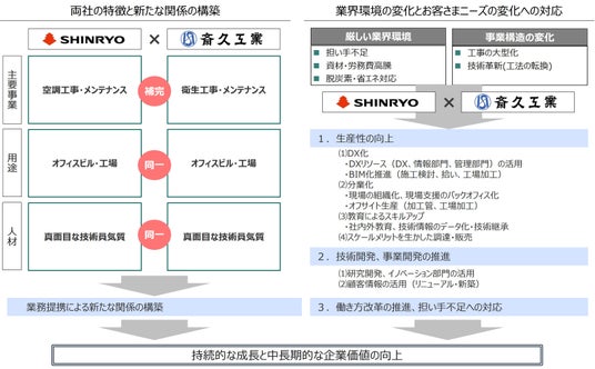 両社が属する設備工事業界は、少子高齢化による担い手不足や資材・労務費の高騰といった厳しい環境に直面しており、加えて、建築技術の進歩による工事の大型化や工法の転換が求められるなど大きな変革を迫られています。
