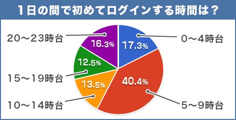 最も多いログイン時間は5~9時台の40.4%