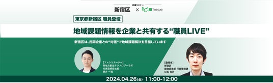 今回の職員LIVEには、東京都新宿区の自治体職員2名に登壇いただき、新宿区で導入している「民間提案制度」の令和6年度の方針や、事業提案の募集を開始する課題の詳細についてお話いただきます。