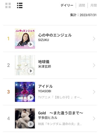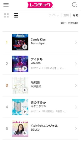 また、7月の月間ランキング(7/1~7/31)では第5位を記録したことがわかった。(レコチョク調べ)