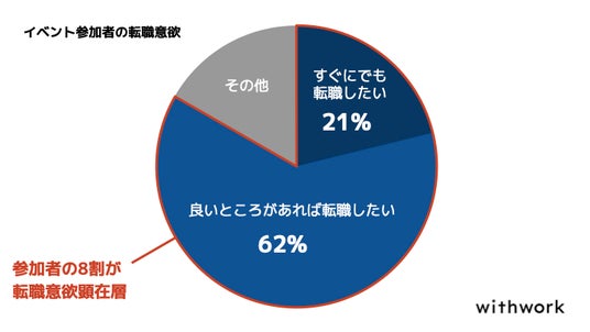 参加者に転職意欲を聞いたところ、8割以上が「すぐにでも転職したい」「良いところがあれば転職したい」と回答。転職意欲顕在層の方に多く参加いただきました。