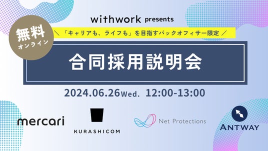 ワーキングペアレンツをサポートする転職サービス「withwork」を展開するXTalent株式会社(東京都港区、代表取締役 上原 達也)は、バックオフィス職の転職支援に特化したチーム発足を記念して、2024年6月26日に「オンライン合同採用説明会 ~『キャリアも、ライフも』を目指すバックオフィサー限定~」を開催しました。4社の企業に登壇いただき、ワーキングペアレンツを中心としたバックオフィス人材と出会う機会を創出しました。