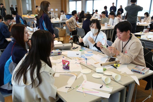 遠州地域を中心とした中高生が他校の生徒とチームを組んで「デザイン思考※」を学び、 身近なプロダクトを“見たことも聞いたこともないもの”に進化させるアイデアを創出します。現在の延長線上での”ちょっとした改善”ではなく、これからの”新しいあたりまえ”となる革新的なアイデアを生み出すことにチャレンジする2日間のプログラムです。