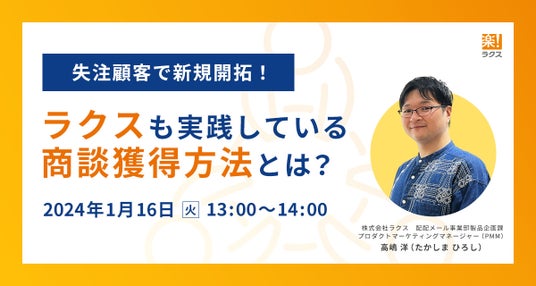 そこで今回は、「新規顧客開拓」に必要な知識と実際にラクスで実践している方法を本セミナーでは紹介いたします。