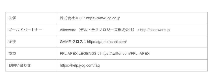 大会の詳細につきましては、FACE Apex Legends公式Twitterをご確認ください。