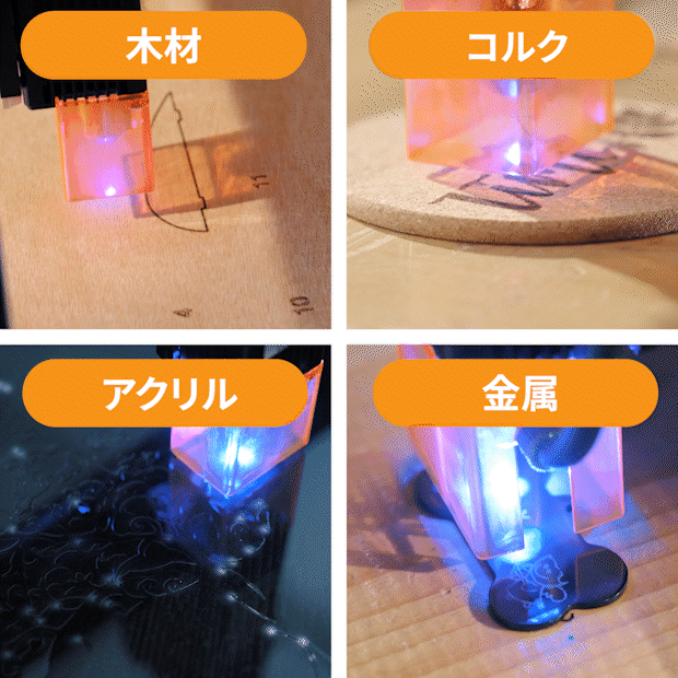 素材に合わせてレーザーパワーを細かく設定できるので、木材・金属・アクリルなど、あらゆる素材の加工が可能です。