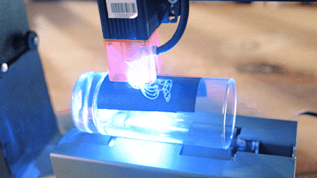 オプションの曲面加工ローラーを使用すれば、複雑な曲面加工も簡単!彫刻物の直径によって4つのモードを適用し、さまざまな大きさの曲面を加工することができます。指輪、ガラスコップ、セラミックコップ、缶、野球のバットなど、さまざまな曲面の加工に対応しています。