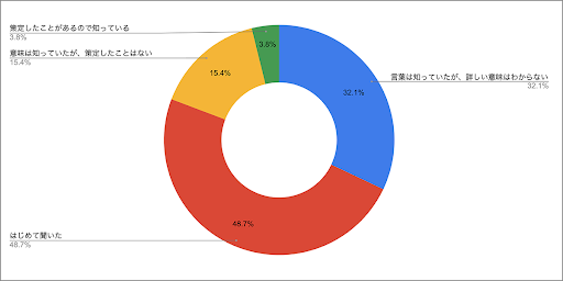 約半数が「はじめて聞いた」と回答しました。「言葉は知っているが、詳細を知らない」との回答が3割強。策定に関わったことがあると回答した責任者は3.8%に留まりました。