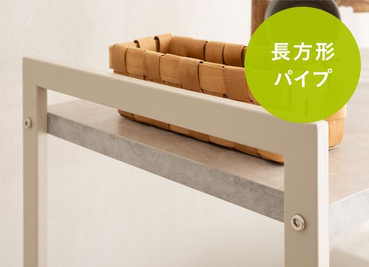 支柱には、頑丈な長方形パイプを採用。スッキリとした見た目ながら、しっかりと支えます。