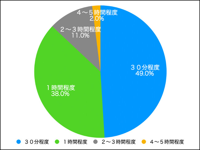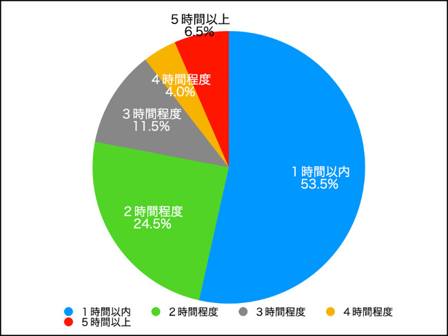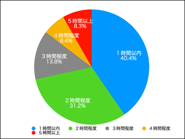 回答者全員のグラフと比べると、1時間以内が53%→40%に減っていて、2時間程度~5時間以上の割合が少しずつ増えていることがわかります。