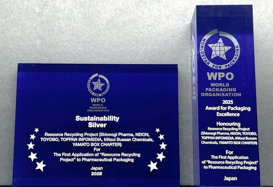 当社が共同運営する「資源循環プロジェクト」は、「WorldStar Awards 2025(Medical and Pharmaceutical部門)」に選ばれており、今回さらに特別賞のSustainability部門で”Silver”(銀賞・第2位)を受賞しました。Sustainability部門は、リデュース(削減)、リユース(再利用)、リサイクル、リストア(復元)を通じて持続可能性を促進する包装材料の責任ある使用に焦点を当てたものです。今回の受賞に際しては、製品設計段階から材料使用の最小化、リサイクル可能性の向上、さらにはGHG(温室効果ガス)排出削減を考慮した点が高く評価されました。また、他にはない独自の資源循環の仕組みを構築したことも特筆すべき点として評価を受けました。