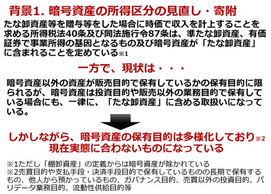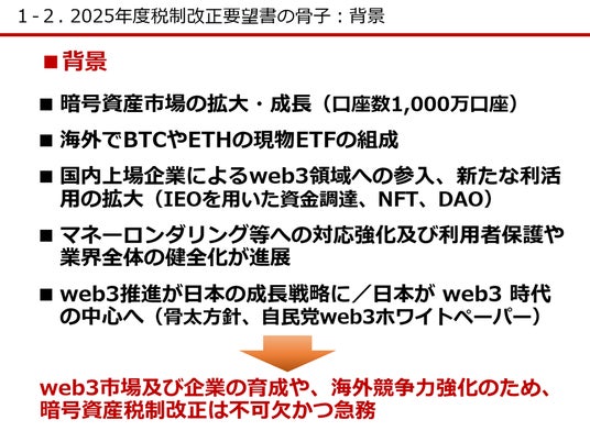 ~Web3.0産業全体の発展を期するべく、暗号資産に関する一連の税制改正を要望~