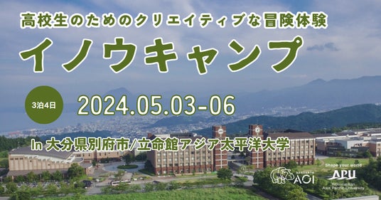 立命館アジア太平洋大学(大分県別府市、学長:米山裕、APU)は、大学入試の総合型選抜(旧AO入試)の対策塾「総合型選抜専門塾AOI」)を運営する株式会社花形(京都府京都市、代表取締役:小澤 忠)と共同で、高校生が大分県別府市に滞在しながらそこでしかできない体験を通じて地域づくりを行う、「イノウキャンプ」を実施いたします。
