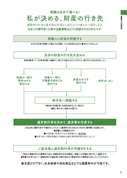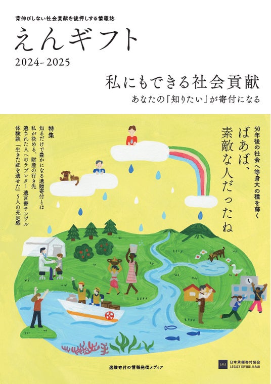 日本承継寄付協会(Will for Japan)は、今を生きる人々の意志を、次の世代に繋げることを目指しています。遺言は、自分のかけがえのないものと向き合い、自分の意志を未来へ繋ぐことができるライフステージアクションですが、死を連想し忌避されるイメージから日本人の10%しか書いていません。遺言は英語で「Will」といい、その言葉から与えるイメージは真逆のものです。当協会では、遺言にまつわるイメージを払拭するとともに、意志を未来へ繋ぐための「Will」 として活用されるために、誰もが負担なく想いをかたちにできる「遺贈寄付」の理解と普及を推進する取り組みとして、遺贈寄付の専門雑誌「えんギフト」の発行や、専門家の育成、遺言書作成への助成金の提供を行なっています。