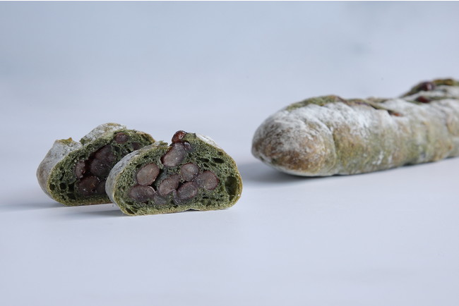 草餅をイメージして、甘さ控えめの大納言鹿の子をたっぷりと包み込んだ和菓子のようなパン。