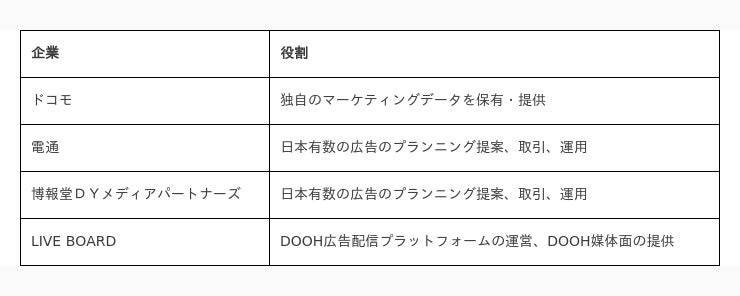 ~ドコモ、電通、博報堂DYメディアパートナーズ、LIVE BOARDの4社でOOH市場におけるメジャメントの標準化とDOOH市場の拡大を推進~