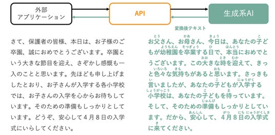 本ツールは、学校で使われるプリントや指示、連絡事項などの文章を、日本語指導が必要な子どもたちや、読み書きに困難のある子どもたちにも理解しやすい、「やさしい日本語」に変換することを目的としています。将来的には、多言語への翻訳機能の搭載も視野に入れています。