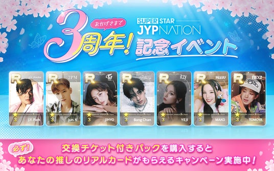 株式会社DalcomSoft Japanは、J.Y. Park、2PM、TWICE、Stray Kids、ITZY、NiziU、NEXZが所属する、JYP エンターテインメントの公式リズムゲームアプリ『SUPERSTAR JYPNATION』(公式サイト:https://superstarjyp.jp)において、サービス開始より3周年を迎えたことを記念して、本日(2025年3月26日)より3周年記念イベントを開始したことについてお知らせいたします。
