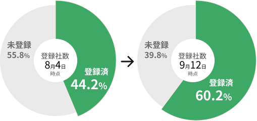 「MakeLeaps」を利用中のユーザーを対象に調査を行ったところ、60%以上の企業が登録番号をすでに入力済みという調査結果となりました。また本調査は8月初旬と9月初旬に2回実施し、1ヶ月で約15%増加しました。