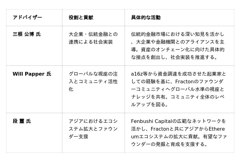 今回の就任は、Fracton Venturesが掲げる「企業がデジタルアセットを活用し、Ethereum上で価値を保有・循環させる社会の実現」を加速させるための戦略的な取り組みです。