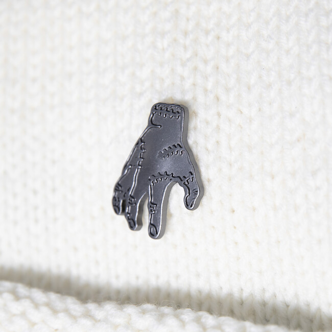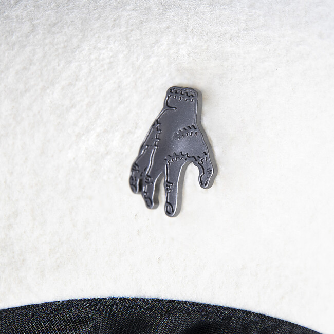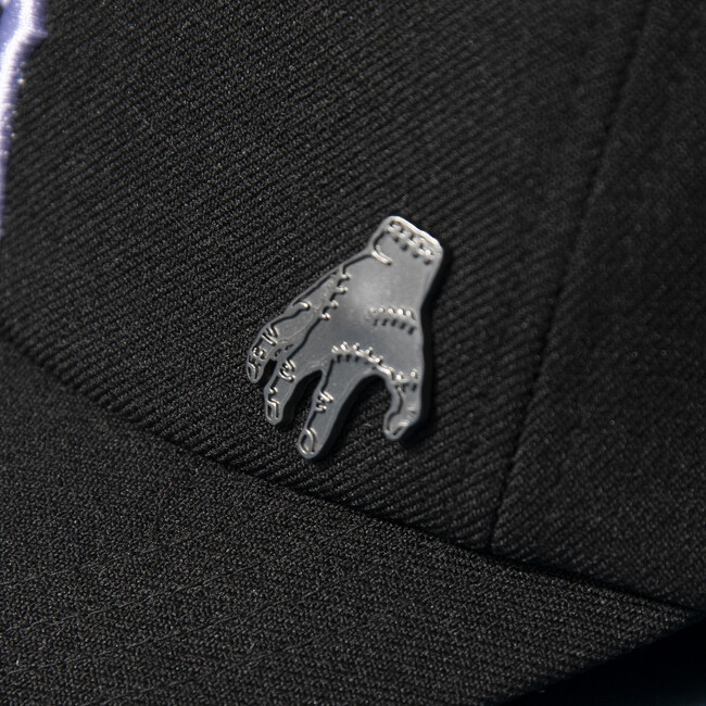 作品の世界観を表現したダークテイストな4アイテムをラインアップ。すべてのアイテムに、ウェンズデーの相棒としてもお馴染みの“ハンド”のオリジナルピンズが付いた、ファン必見の仕上がりです!
