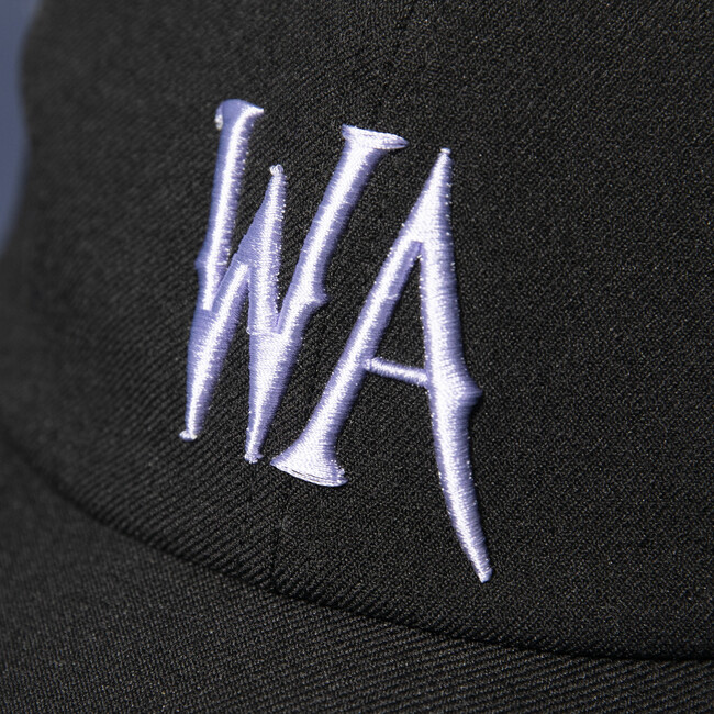 ウェンズデー・アダムスのイニシャルロゴを3D刺繍で立体的に表現したキャップ。ロゴのインパクトが映えるシンプルなブラックと、ウェンズデーの通うネヴァーモア学園の制服をイメージしたストライプ柄の2色をご用意しています。