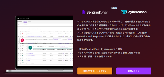 弊社セキュリティアナリストが、グローバルトップクラスの検知・防御力を持ったEDR(SentinelOne、Cybereason)を運用しますので、お客様の手間は最小限に抑えられます。