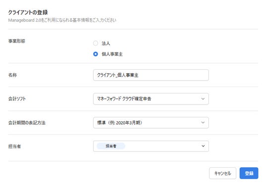 顧問先の新規登録画面で、個人事業主の顧問先を登録することができるようになりました。