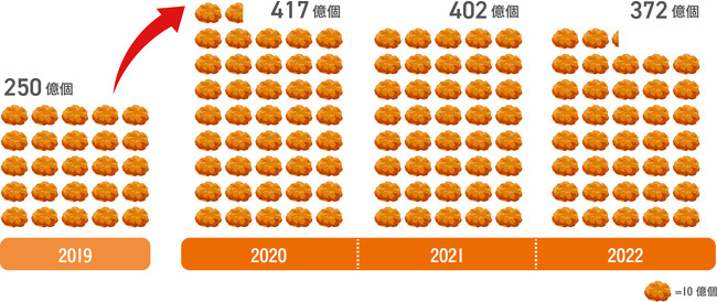から揚げの年間総消費量は約370億個!?〔推計値*3〕巣ごもり需要による急伸は一服の感も、コロナ禍前と比較した消費量は約150%に!