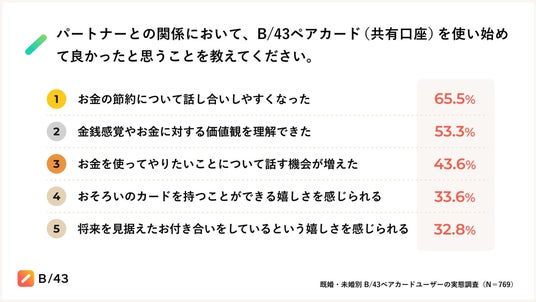 B/43ペアカード(共有口座)を使い始めてよかったこと1位は
