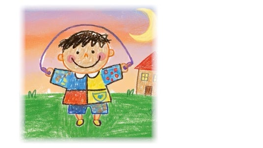 縄跳びにチャレンジする男の子は、なかなかうまく飛べず、夢中になるうちに日が暮れてしまいます。帰りが遅く心配したお母さんが探しに出ると、そこには上達した縄跳びを飛ぶ男の子の姿。ほっとした気持ちと、長い時間夢中で頑張っていたことへの愛おしさに、思わず笑みがこぼれます。たくさん遊び疲れた男の子はぐっすりと眠り、どんどん成長していく姿を見守るシーンへ。そこに、成長を期待する大人の目線からメッセージが現れ、子どもがしっかりと眠ること、そしてそれを見守ることの大切さを伝えます。